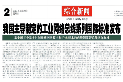 中国工业报&中国质量报报道:全IP化工业网络总线开启工业网络新时代