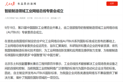 人民日报&人民网报道:智能制造领域工业网络总线专委会成立